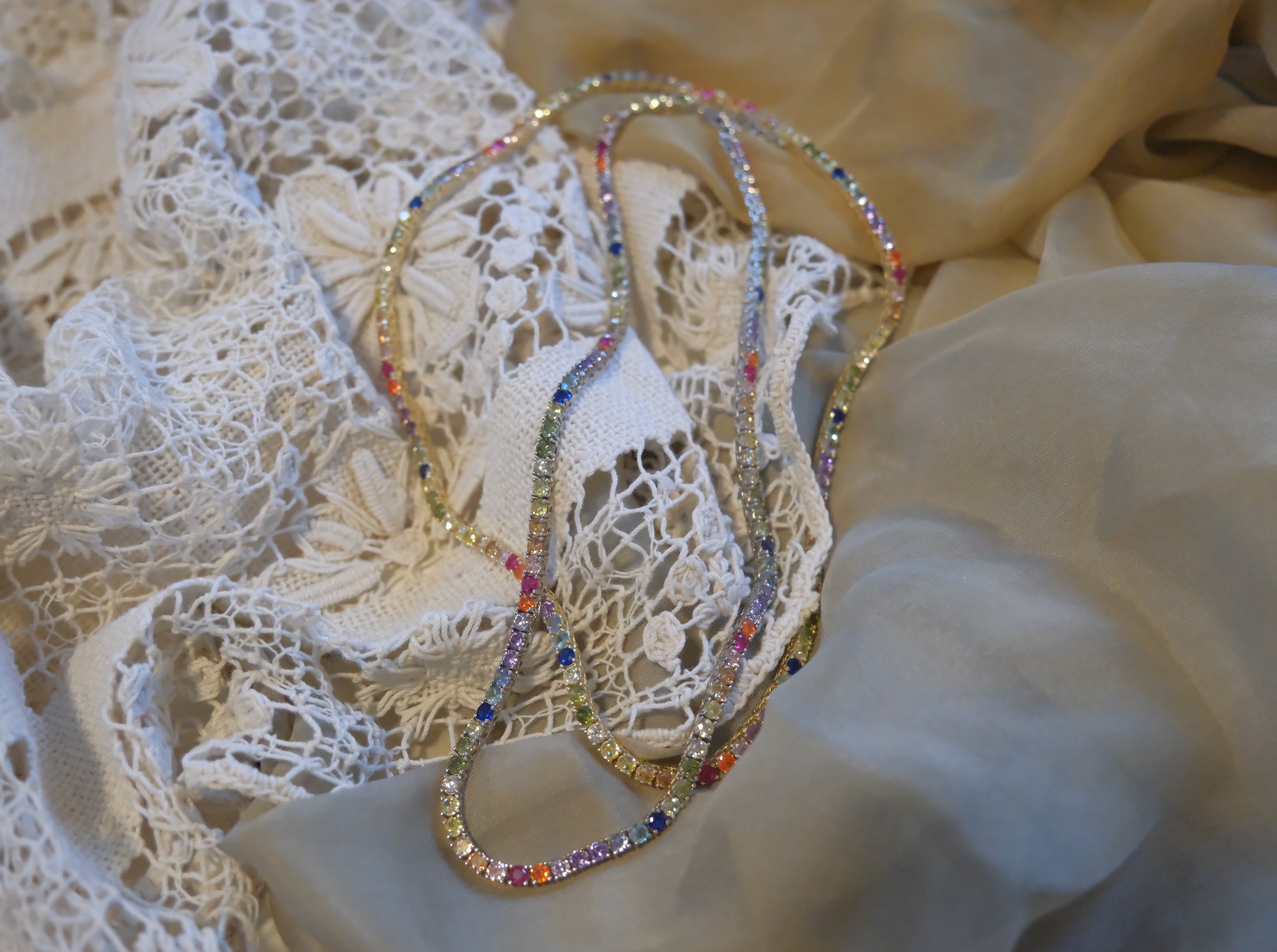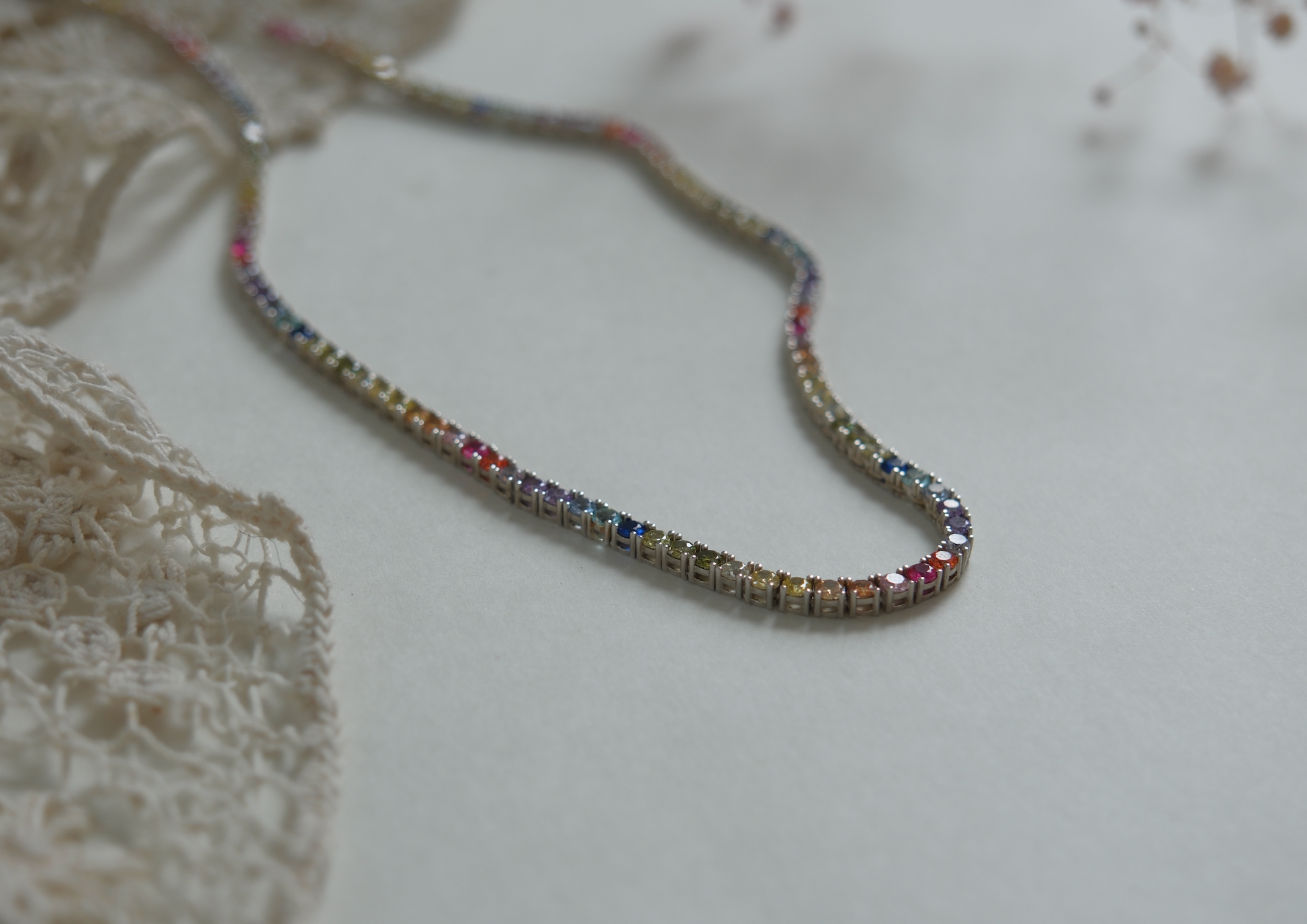 Sterling Rainbow Gem Tennis Necklace